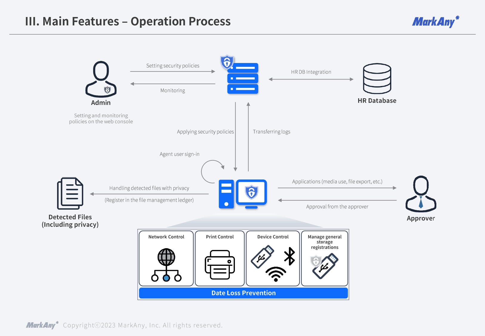 MarkAny ProtectGuard DLP is a data loss prevention solution that safeguards sensitive corporate information from unauthorized transfers or leaks. It monitors and controls various channels such as documents, emails, USB devices, and printers in real time to enhance information security.